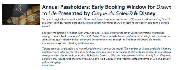 Annual Passholders can also purchase tickets right now on Cirque du Soleil’s website.