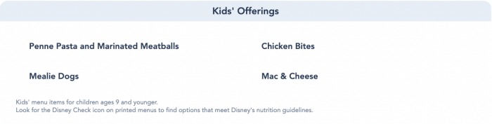 And, if you’re traveling with the kiddos, there’s also a small selection for them that features more American-style dishes like Pasta, Chicken Bites, and Mac & Cheese.