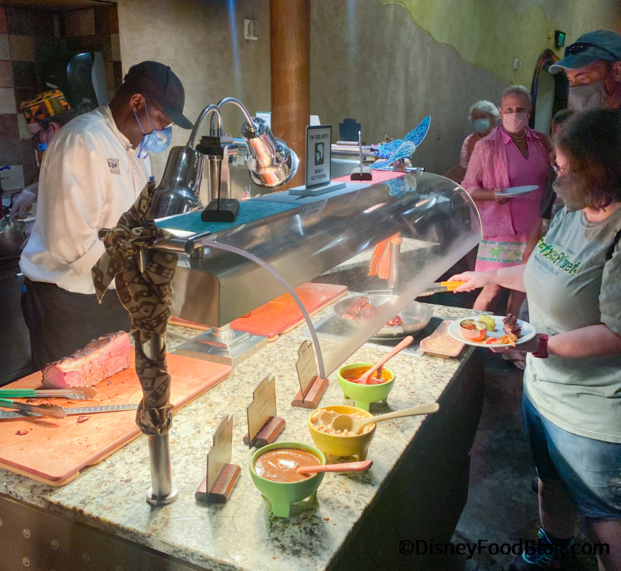 Plus, you can even find a wide selection of entrees including an entire Rotisserie Area where a Cast Member will cut slices of meat for you from under the hot lamps.