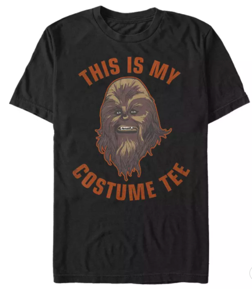We took a look at Target, Amazon, and Spirit Halloween to find these super easy costumes. Let’s start out with a Star Wars-themed ensemble. You and your crew can each get a “This is my costume tee” for a different Star Wars character, that way no one will be confused about who you’re supposed to be!