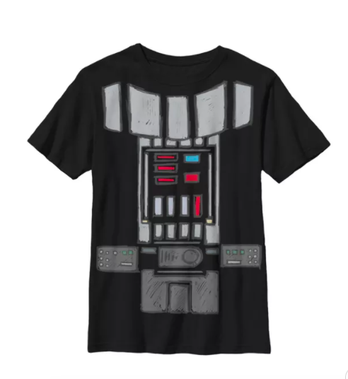 In the same theme, we found a couple of other Star Wars t-shirt costumes, including this Darth Vader one for $19.98.
