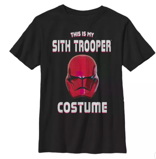 For the younger fellas, you can get a Sith Trooper t-shirt that matches the adult ones! This one only comes in kids’ sizes, so it’s perfect for a little one in your group.