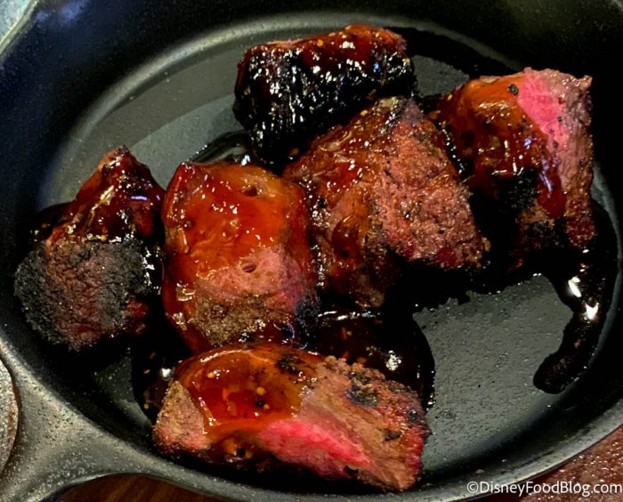The Wood-Fired Grilled Teriyaki Beef remains unchanged but still had a great flavor. The meat was pretty thick and tough. It’s not the best steak you can find in Disney World, but considering all the other goodies you’re getting here, we don’t suspect too many people come here looking for the most perfect steak of their lives. It’s still got a nice flavor though. You can definitely taste that wood-fired char. Mmm.