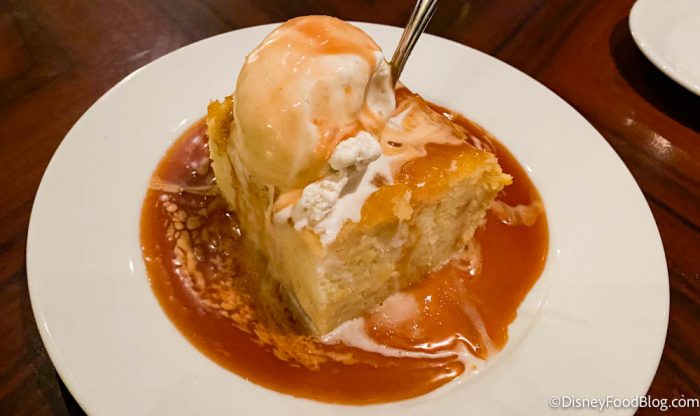 Well, it’s ALMOST the classic bread pudding we knew and loved. When ‘Ohana reopened, the bread pudding remained the same but the sauce served with it was switched to a straight caramel sauce instead of the Bananas Foster-type sauce used previously.