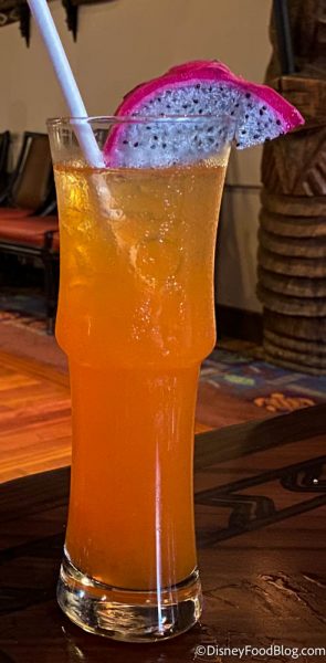 The Dragon Iced Tea (with the dragon fruit slice) is Hendrick’s Gin, Lemon and Ginger Herbal Tea, Tropical Juices, and Blood Orange, and costs $14.