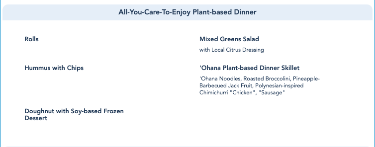 There’s also an option for a plant-based dinner with plenty of items there as well!