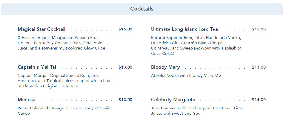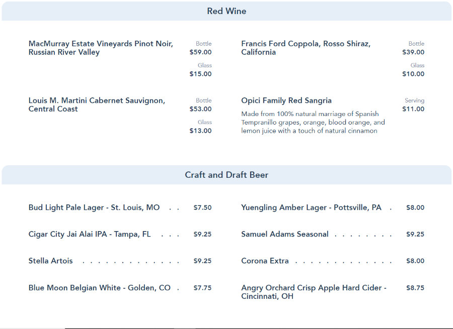 So let’s get to the eats. Now, this is where Hollywood & Vine has impressed us since switching over to the pre-fixe menu. And we’re going to tell you right up front — it did not disappoint this time either! You get salad and bread, which everyone shares, and then each guest gets an option of one entree and one dessert per person. The cost is $55 per adult and $36 per child. Coffee, tea, and sodas are included in the price, although you also have the option to pay extra for alcoholic beverages, including cocktails…