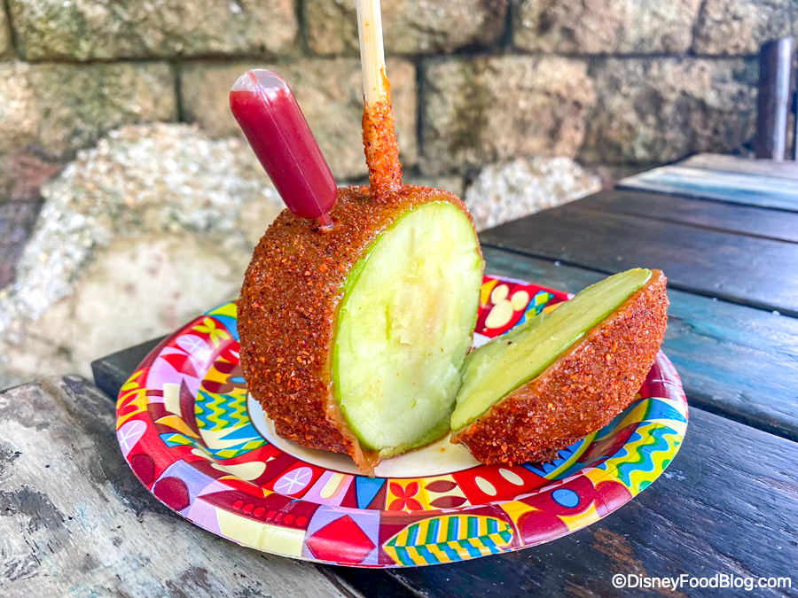 It’s a green apple dipped in caramel and then covered with Tajín seasoning and it has a little pipette filled with chamoy for $10.99!