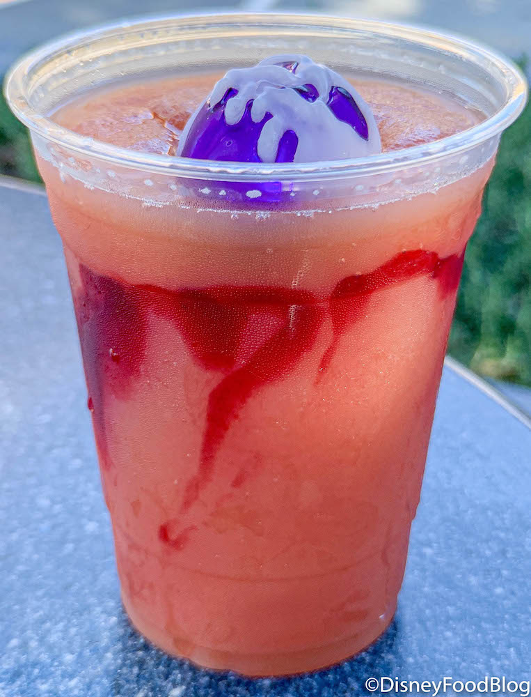 - Blood Orange Slush – Blood orange slush with a swirl of raspberry sauce and a glow cube