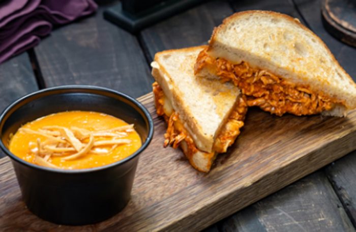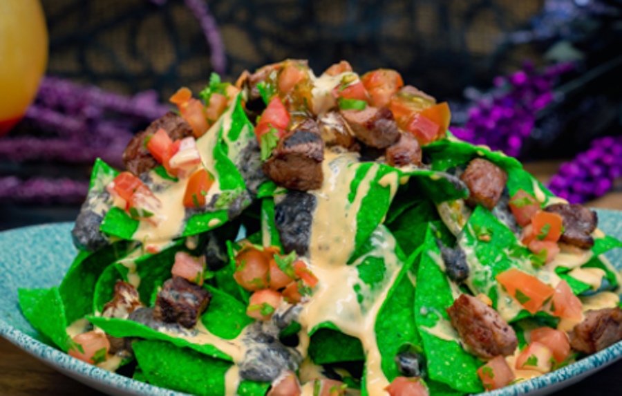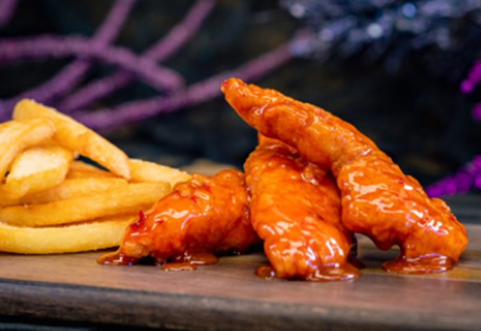 - Loaded Buffalo Chicken Fries – Steak fries topped with cheddar cheese, chicken tenders tossed in buffalo sauce, and celery bits drizzled with ranch (available at Oogie Boogie Bash)