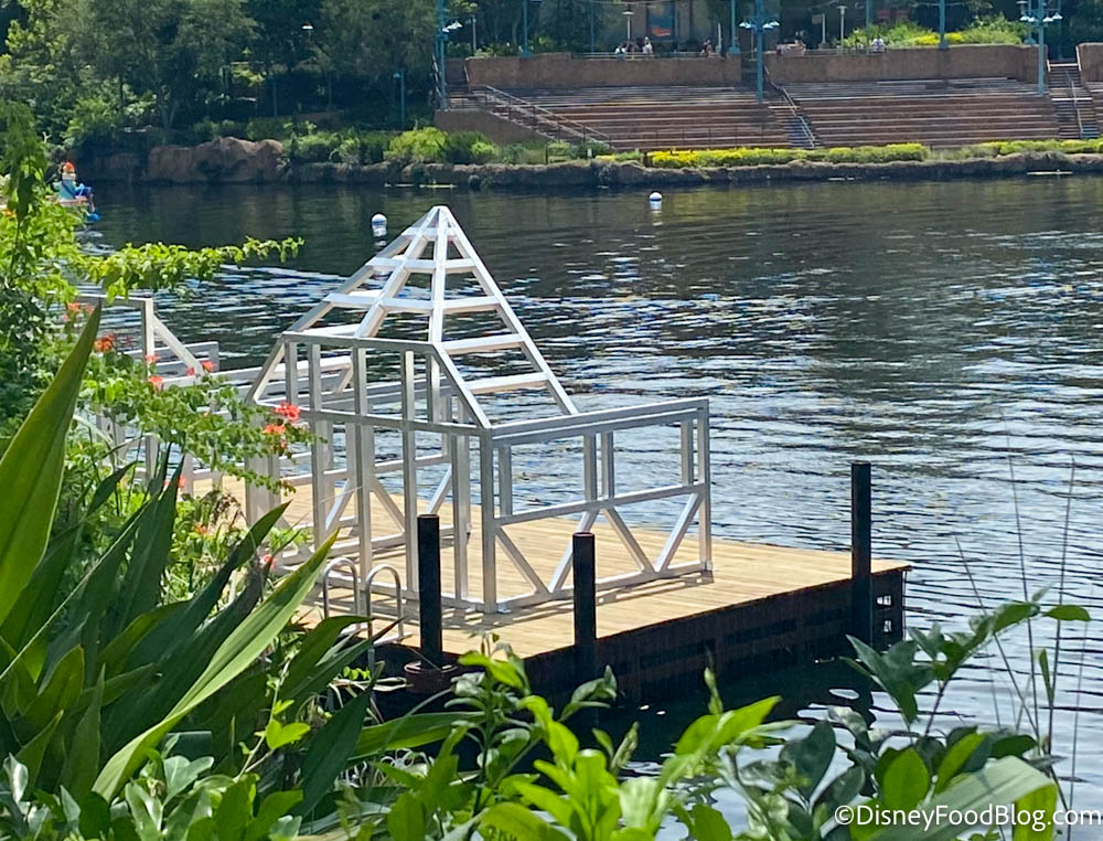 We love that each park has their own spin on the banners that have been going up for the 50th Anniversary. And speaking of the 50th, we also saw construction coming along on the raft in Discovery River Lagoon that appears to be a part of Animal Kingdom’s upcoming new show, Disney KiteTails!