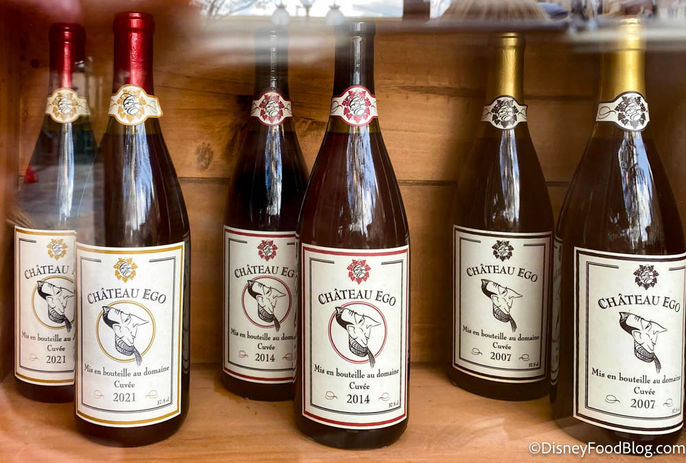 Near the entrance to Remy’s Ratatouille Adventure, we found a display of wines with the name Chateau Ego.