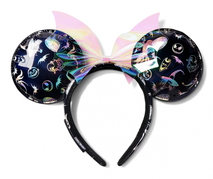 The Nightmare Before Christmas Ear Headband is also made by Loungefly and matches the Loungefly mini backpack! Made with faux leather PVC, this headband features the same allover print as the backpack with an adorably spooky iridescent clear bow.