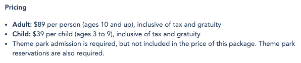 The experience costs $89 per adult (ages 10 and up) and $39 per child (ages 3 to 9). You can book your reservations online starting September 23rd, 2021, and the packages are available starting October 1st, 2021 (when “Harmonious” debuts in EPCOT).