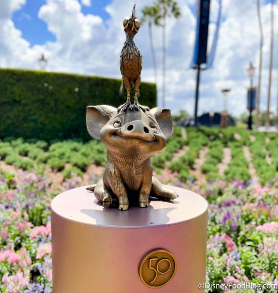 Like the other character statues we’ve seen, the ones in EPCOT are all on EARidescent stands with a “50” logo on the front.