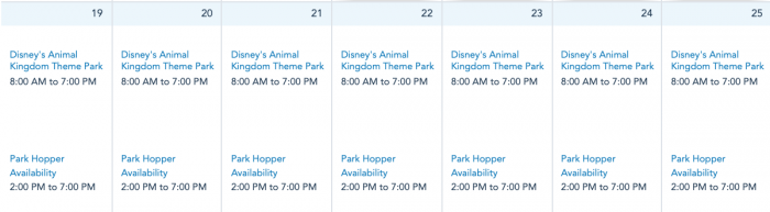 Disney’s Animal Kingdom will be open daily next week from 8AM-7PM.