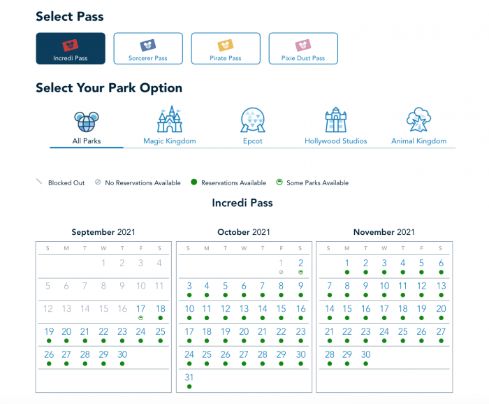 Current Disney Park Pass Reservation Availability the Week of September 19th