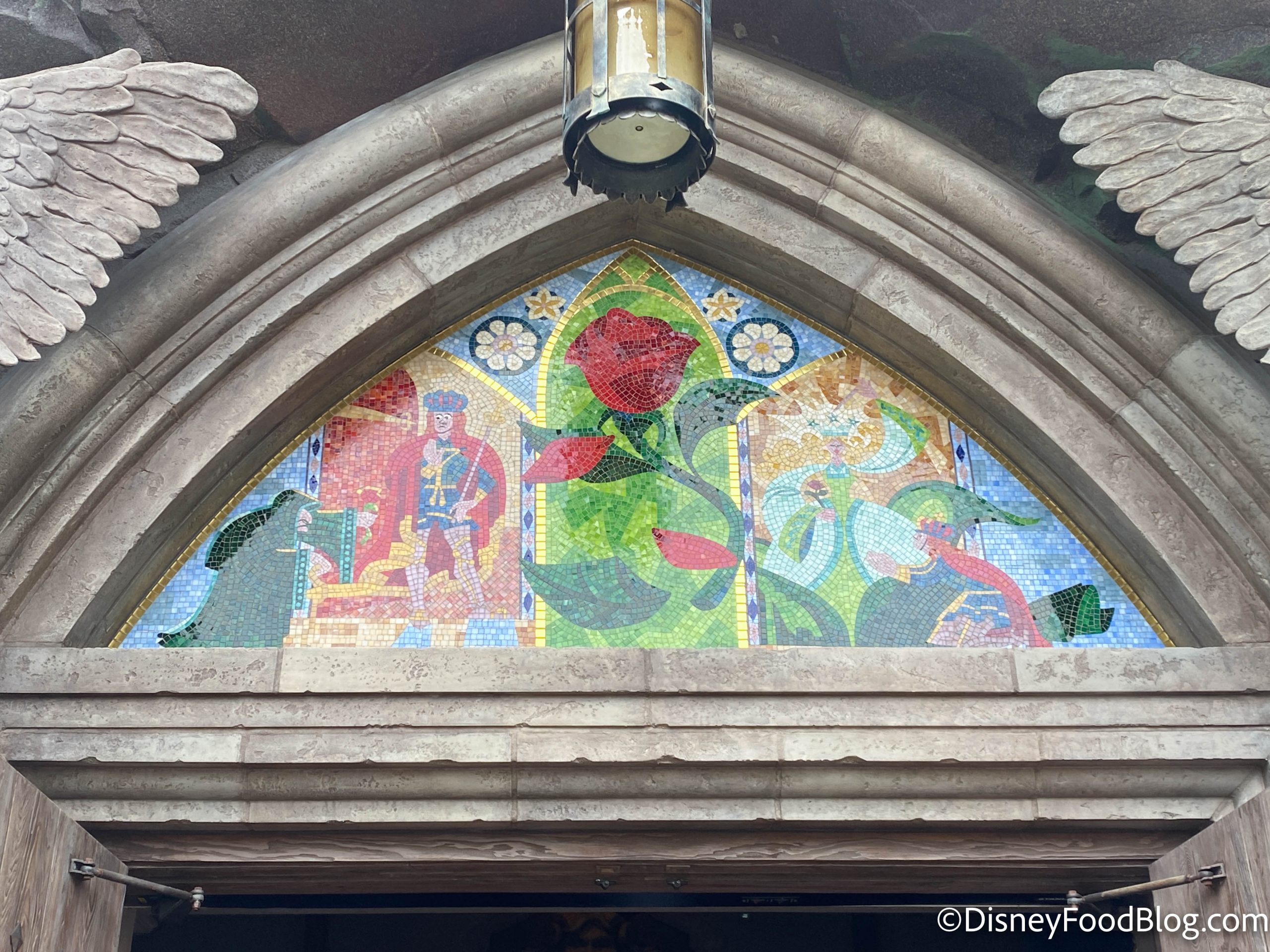 Inside Be Our Guest Restaurant is the iconic mosaic of Belle and the Prince (err…the Beast).