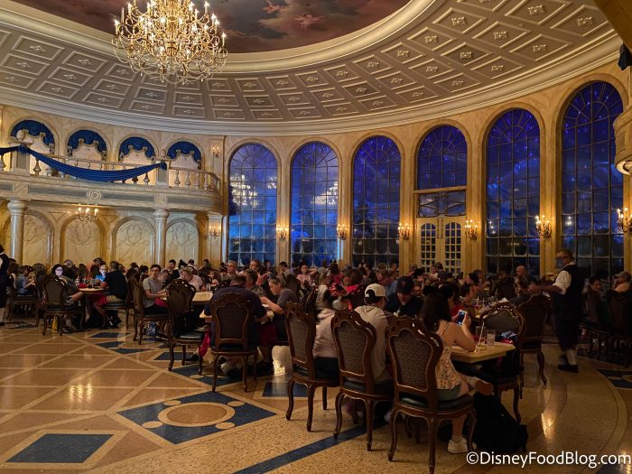The Grand Ballroom is the signature room and one of three rooms you may be seated in. The Ballroom is, of course, where Belle and the Beast had their first dance.