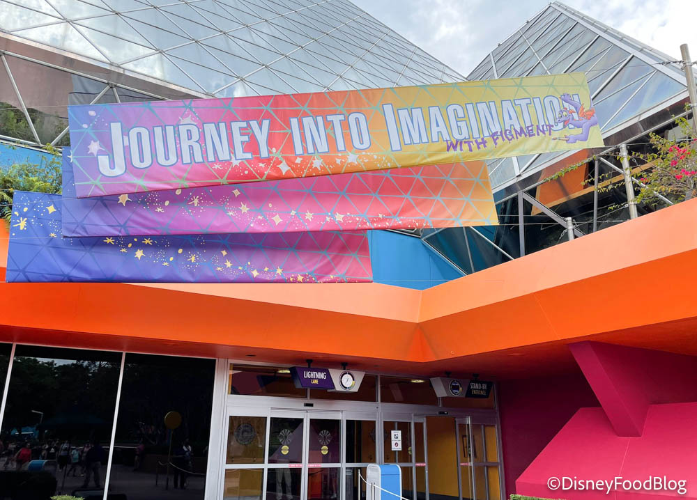 Although the stand-by line is usually pretty short, Journey into Imagination with Figment also has a new Lightning Lane sign!