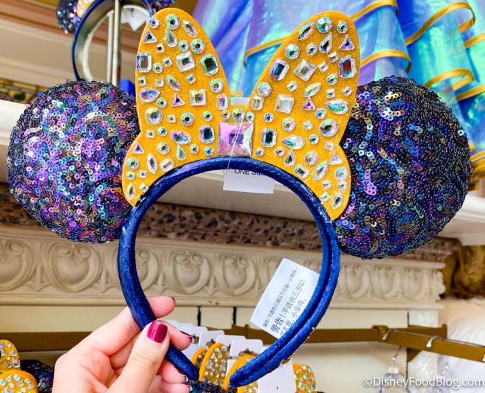 These 50th Anniversary EARidescent Ears reflect the 50th anniversary’s EARidescence with rainbow sequin ears and a bow covered in colorful gems. These sparkly ears are $39.99.