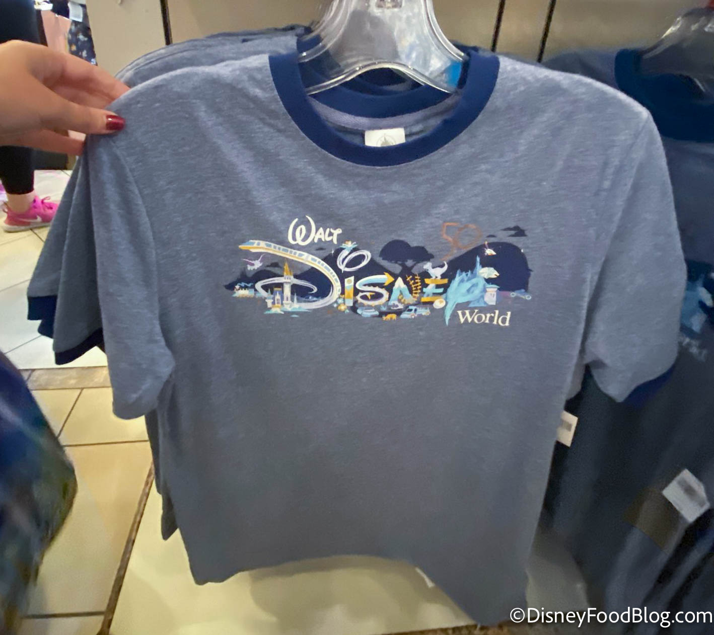 Another t-shirt in the collection has a print of Disney icons and the 50th logo in the words “Walt Disney World.”