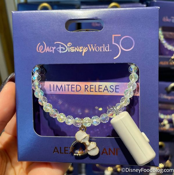 This limited release 50th Anniversary Bracelet is $65, and it comes with EARidescent beads and a white Minnie ear charm.