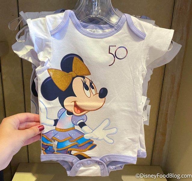 And for $29.99, there’s an adorable Minnie Onesie for babies, starring Minnie in her EARidescent dress.