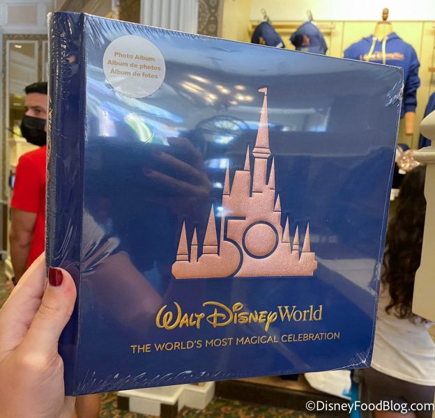 …and this photo album with a white background and colorful EARidescent and Disney Park details. This 50th Park Icon Photo Album is $24.99.