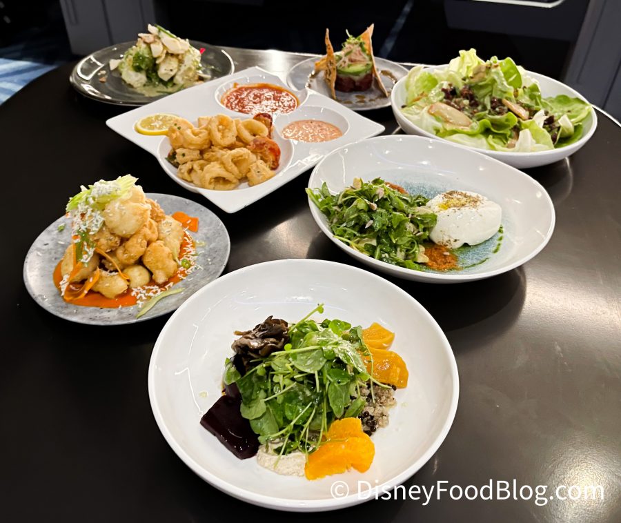 We started with the Lift-Offs, which included Big Bang Burrata, Starry Calamari, Blue Moon Cauliflower, Neptune Tartare, Centauri Caesar Salad, Space Greens, and Galaxy Grain Salad.