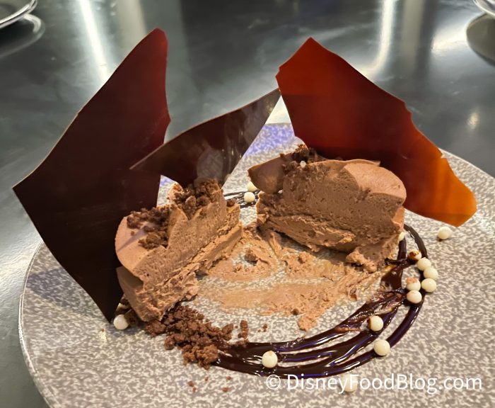 This dessert has a really unique look to it; the presentation was definitely fun and unique! The flavor was rich and chocolatey — just what you would want from this dish. It was light and airy so we didn’t feel too weighed down as we were eating it.