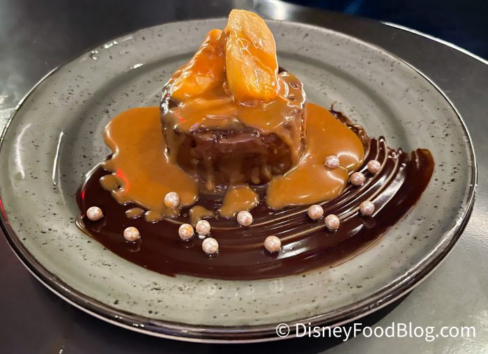 We noticed that the toffee sauce was VERY thick — it definitely wasn’t just a caramel! Overall this dessert was a little on the small side. We loved the bananas on top though! If you’re looking for a “bread pudding” type of dessert, we think there are much better options for you around Disney World. Out of all the options available, we’re just aren’t sure if this is the best one. But if you absolutely love bread pudding and are looking for that type of dessert while here, then you might enjoy it.