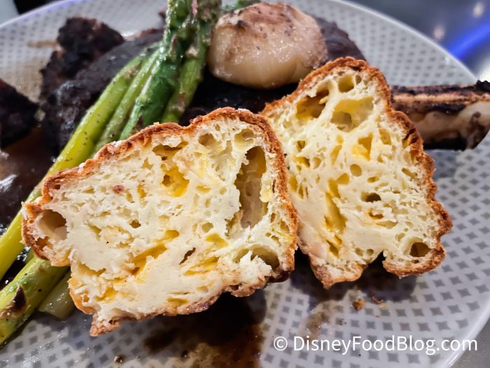 Here’s a look inside that Cheddar Leek Moonrock! The texture was somewhere near a popover — crisp outside and doughy inside.