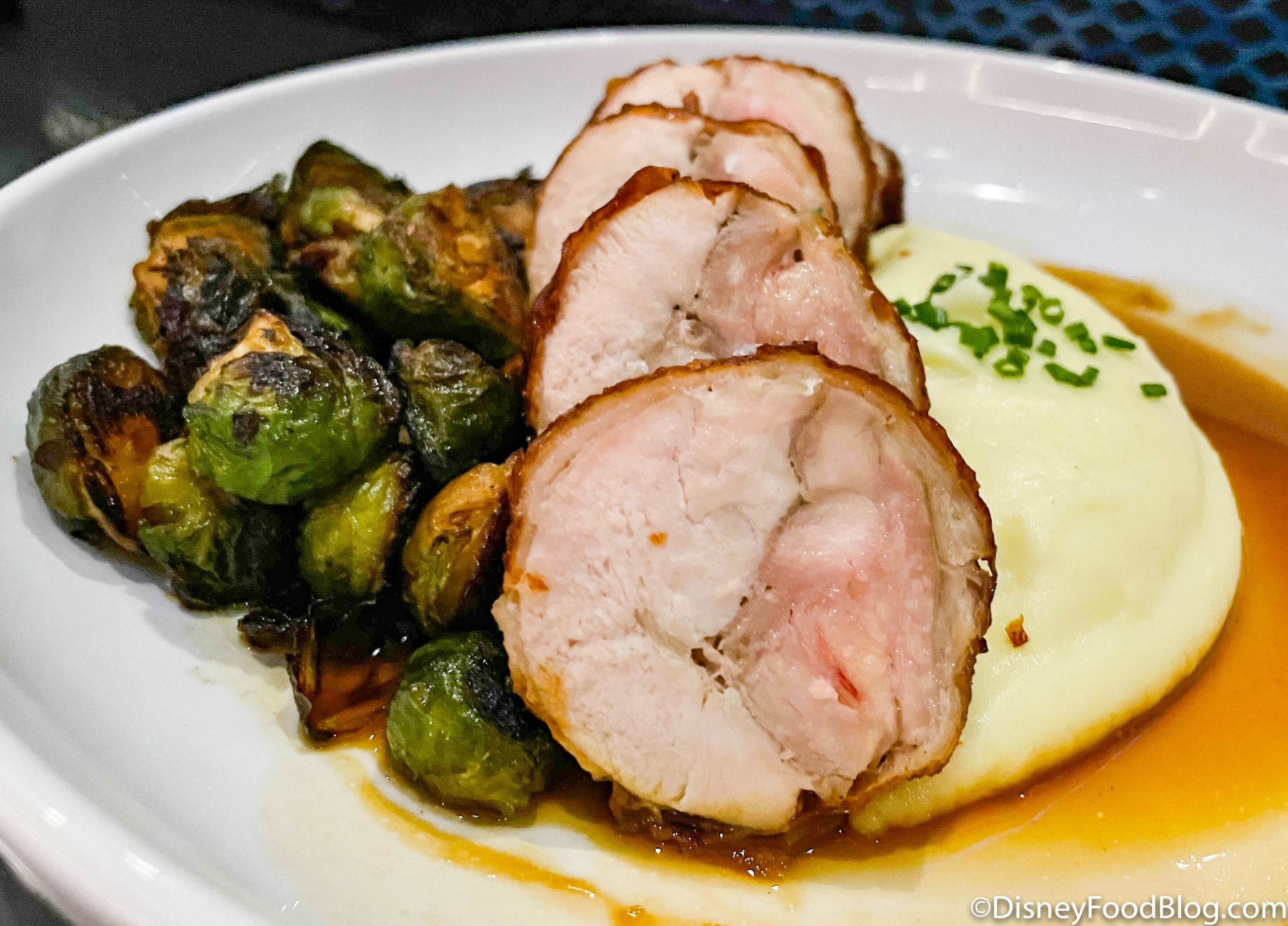 Next up is the Roasted Free-range Chicken, which includes Chicken Roulade, Mashed Potatoes, Brussels Sprouts, Roasted Garlic Thyme Jus. Again, this is one of the few entree carryovers from lunch.