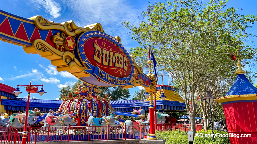 The Dumbo attraction sign looks a little different! Timothy Q. Mouse normally sits atop the sign, feather in hand, greeting guests who take a ride on Dumbo! Where could he be? It’s not like he ran away to join the circus… .