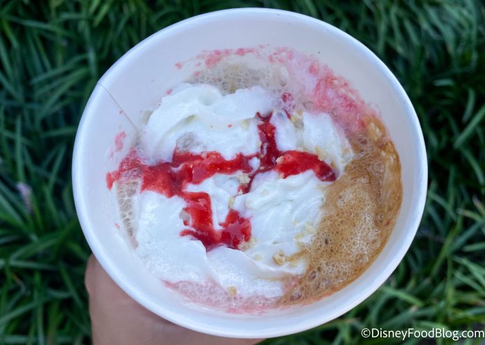 This drink wasn’t as sweet as we expected! The espresso was just as strong as the strawberry syrup, which made it surprisingly balanced. This is a unique spin on your morning coffee, but the fruity berry flavor mixed with, well, coffee might not be for everyone. It was enjoyable to drink, but we’d still reach for a more traditional latte over this in the long run. Although we wouldn’t get it again, it was a fun and unique drink!