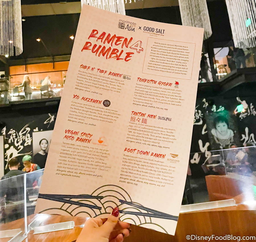 Disclosure: In nearly all circumstances, Disney Food Blog writers and photographers pay full price for their own travel, hotel, food, beverage, and event tickets. We do this because it’s important to us as journalists to ensure not only that we give you unbiased opinions, but also that you can trust us to do so since we’re paying our own way. On rare occasions, when we are invited by a company to attend a preview as media, and when we choose to accept that invitation, we will always make you, our readers, aware of that situation. Today, we were invited to attend the media event of the Ramen Rumble. Note that when we attend events as media we are 1) Not required to review that event/food on any of our channels, and 2) Not required to review that event/food favorably. You can always count on DFB to give you a 100% unbiased and honest review of any event that we attend, food that we eat, or beverage that we drink. You can see more in our Disclosure Policy. Thank you for reading. — AJ