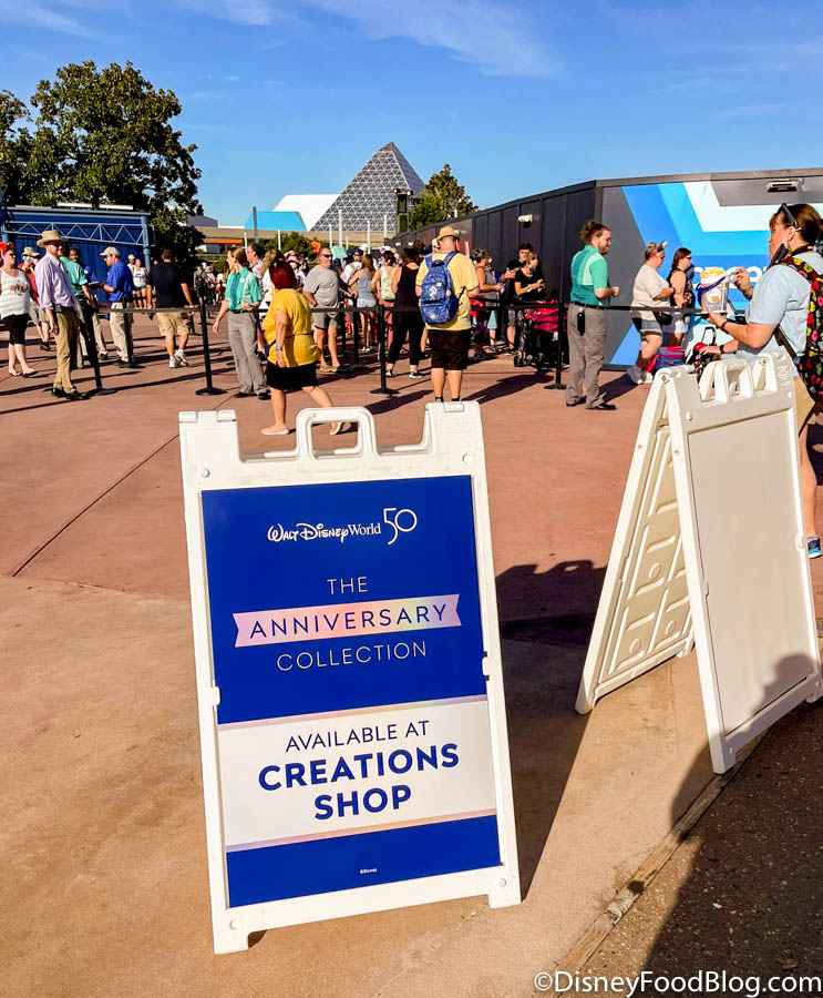 We’re kind of shocked that the crowds aren’t very big in EPCOT so far! But, we’ll be sure to update this post throughout the day so you can see if crowd levels change. So, stay tuned, because we’re covering EVERYTHING about Disney World’s 50th anniversary today!