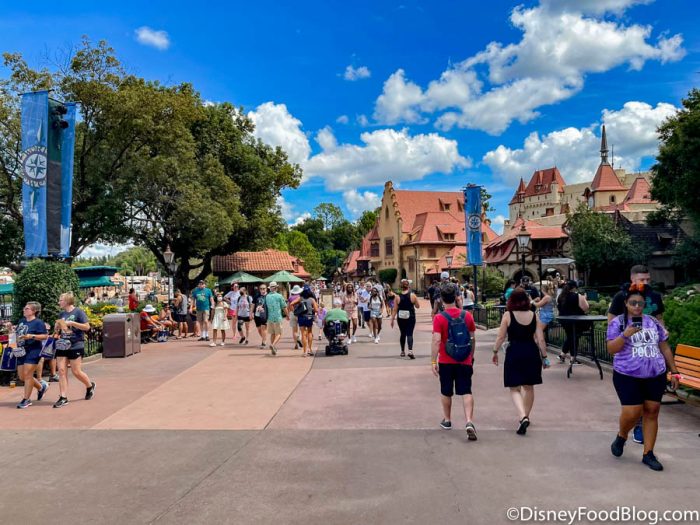 It’s also a HUGE day at EPCOT for other reasons, too — today marks the opening of a brand NEW attraction, Remy’s Ratatouille Adventure at the France Pavilion — AND a new restaurant is opening there, too — La Creperie de Paris. SO much going on! So, as you can imagine, all that excitement has brought a LOT of guests to the parks to check all the new stuff out. Let’s take a look at what crowds are like at EPCOT today.