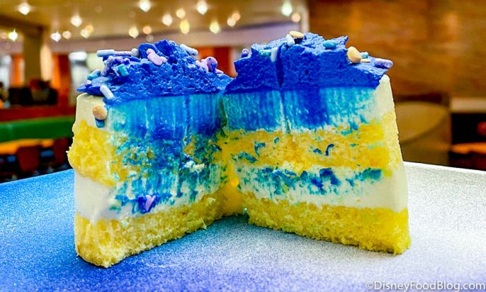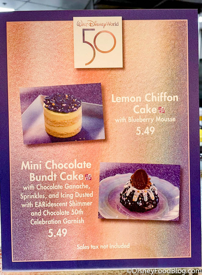 First up is the Mini Chocolate Bundt Cake for $5.49. This miniature cake is covered in chocolate ganache and filled with chocolate mousse. On top you’ll find sprinkles, and icing dusted with EARidescent shimmer, as well as a 50th Anniversary garnish made of chocolate.