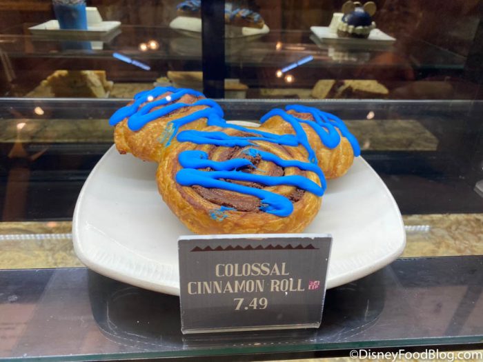 At Creature Comforts, the park’s Starbucks location, you’ll find a few new offerings for the 50th Anniversary. First of all, one of our favorites, the Colossal Mickey Cinnamon Roll, got a blue icing makeover!