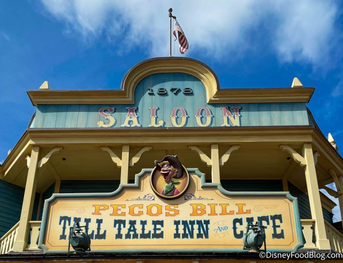 And our latest quest to eat EVERYTHING has brought us to Pecos Bill Tall Tale Inn and Cafe at Magic Kingdom. Here we’re trying two new 50th anniversary menu items. So let’s get to it! We started with the EARIdescent Nugget Churro for $5.89.