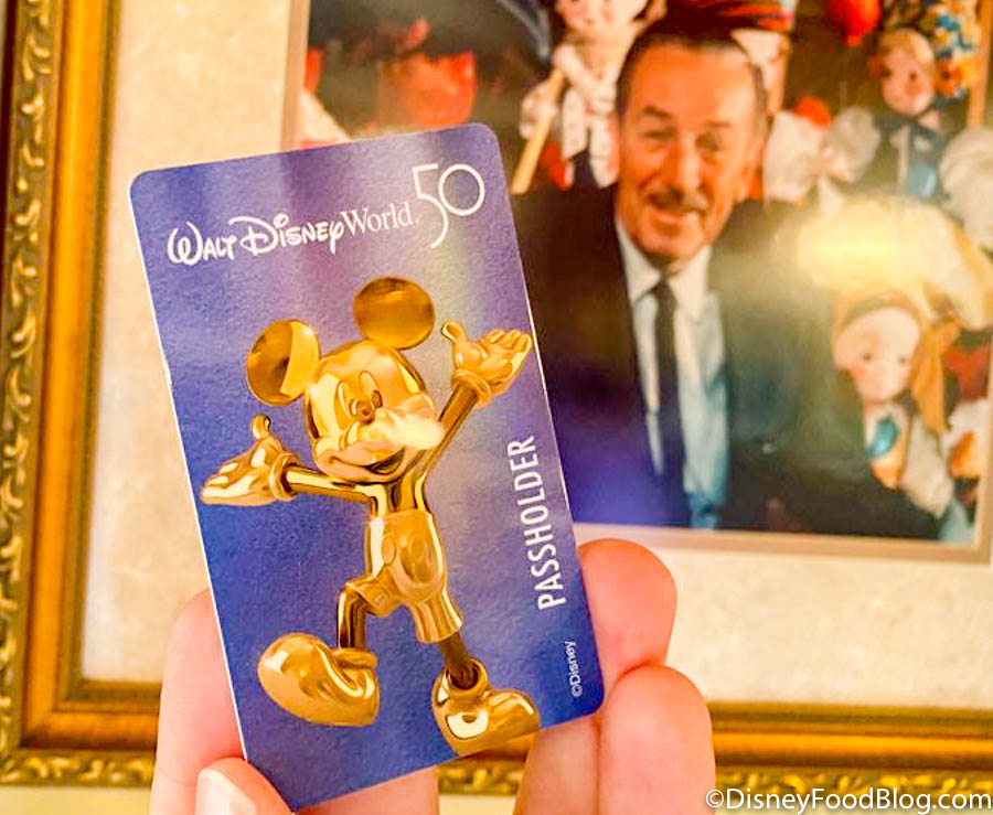 One of our fabulous DFB reporters (who is an Annual Passholder) stopped by Guest Relations in Magic Kingdom earlier today and was able to grab a brand NEW 50th Anniversary Passholder Card for FREE!