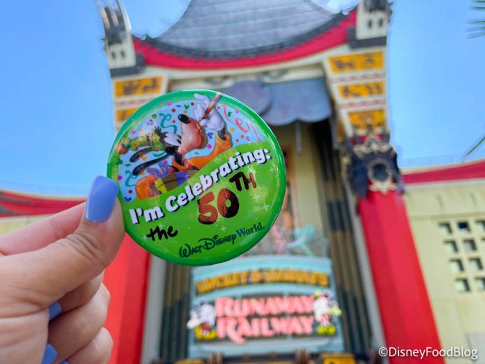 In honor of the 50th Anniversary, there are new fireworks shows, restaurants, a new ride, and new merchandise. Plus, there are more than 150 new snacks and treats around the parks, and we’re about to try another one!
