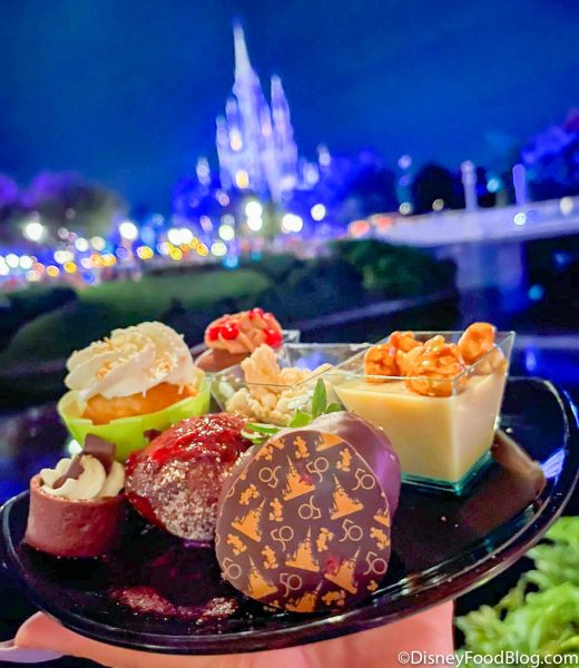 For this dessert party, you get to enjoy treats at Magic Kingdom’s Tomorrowland Terrace during the fireworks. This is similar in structure to an experience that was previously offered in Magic Kingdom, though many of the dessert offerings have changed.
