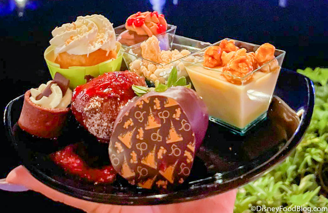 Overall, we really had a great experience at this dessert party. The Cast Members that were there were fantastic and some of the best we’ve encountered in Disney World. The trays of food were constantly being refilled, and the Cast members were all very attentive, excited, and kind. The cast was incredible – trays were constantly being refilled and they were very attentive and excited and kind. One of them even spoke to us for a while about the fireworks, the 50th Anniversary, and more. Seriously, we cannot say enough just how fantastic the Cast Members were here.