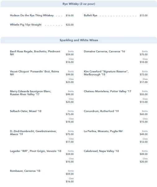 Whew, that’s a lot of drink options. There are nonalcoholic beverages as well. Now, let’s eat!
