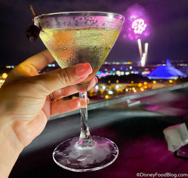 There’s another small room with just six tables that faces the back of the building. This is where you can see EPCOT and the Electrical Water Pageant (with its new 50th pieces!).