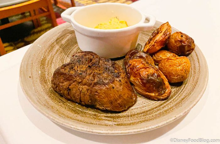 Another point of comparison is the Magic Kingdom firework parties. Those DO come with alcohol for adults, but most of the party options cost $99 per adult or $114 for the priciest option in the park. Yes, you get an upfront view of the fireworks, but you’re also just getting a few small sweet bites to eat. Here, you’re paying the same as the cheaper options and getting a three-course meal out of it and a unique view of the fireworks if you time your meal right (you can also return with your receipt if you dine earlier to get access to the balcony for firework viewing!). If food is an important part of your firework experience, it might be seriously worth considering, especially since you could potentially shell out the same or more for the dessert parties in Magic Kingdom.