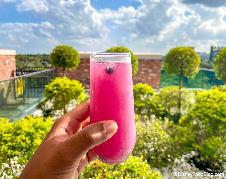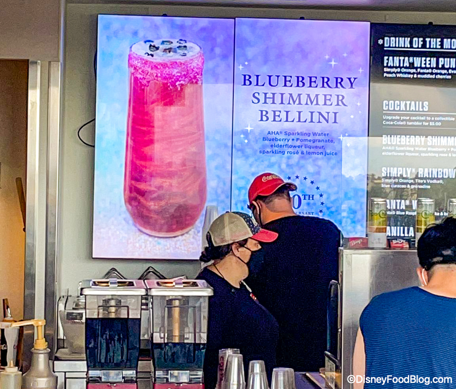 This is the Blueberry Shimmer Bellini! It’s a special for the 50th anniversary and can be found over at the Coca-Cola Store Rooftop Beverage Bar in Disney Springs.